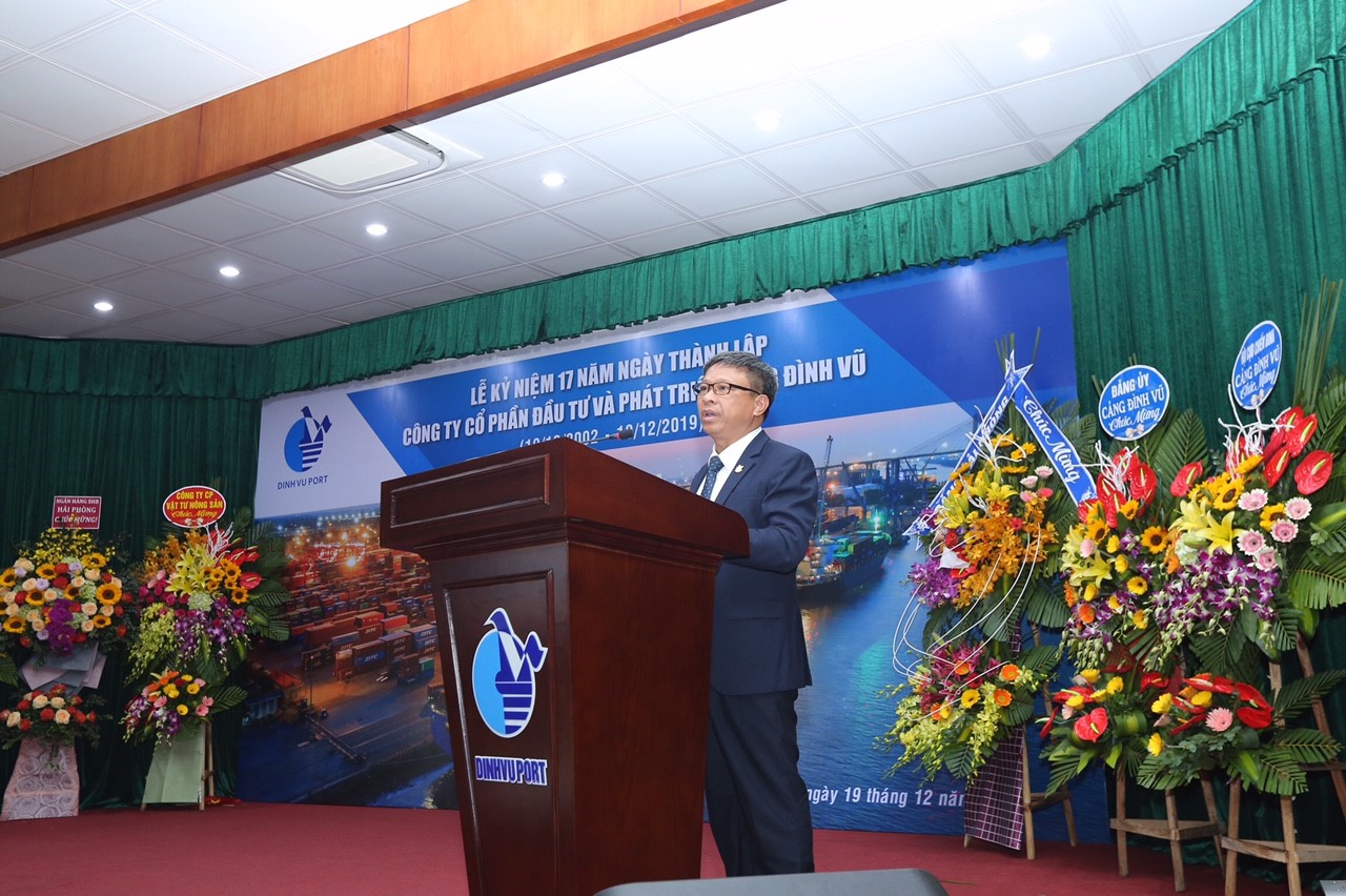 Phát biểu chúc mừng tại buổi lễ, Ông Phạm Hồng Minh – Phó bí thư Đảng ủy, Chủ tịch Hội đồng quản trị Công ty Cổ phần Cảng Hải Phòng đánh giá cao và ghi nhận thành tích mà Cảng Đình Vũ đã đạt được trong năm 2019 cũng như trong những năm gần đây; đồng thời gửi lời chúc tới Ban lãnh đạo và toàn thể CBCNV Cảng Đình Vũ sẽ luôn đoàn kết, quyết tâm vượt qua những khó khăn để hoàn thành và hoàn thành vượt mức các chỉ tiêu trong năm 2020 và giai đoạn sắp tới.