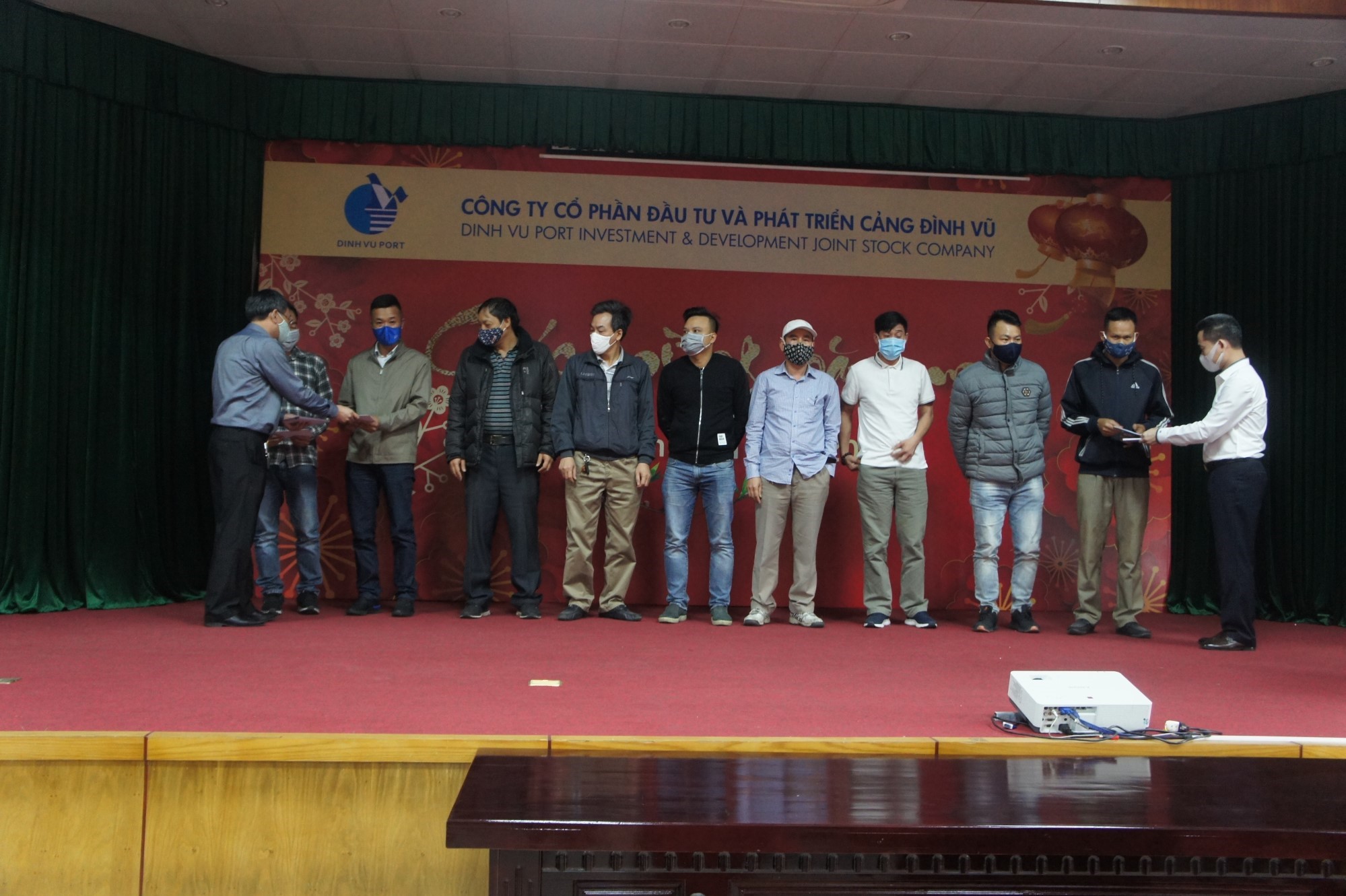 Trong 2 ngày 21&23 tháng 4 đã tổ chức trao tặng quà cho 19 lượt người lao động trong danh sách, tổng số tiền đã hỗ trợ là 95.000.000 đồng. Đây là nghĩa cử đẹp và thấu tình đạt lý của Cảng Đình Vũ trong giai đoạn thành phố và cả nước gặp nhiều khó khăn do ảnh hưởng của dịch Covid-19. Người lao động của Công ty Cổ phần Tiếp vận Đình Vũ khi nhận hỗ trợ cũng đã có lời cảm ơn sâu sắc tới Ban lãnh đạo và tập thể CBCNV Cảng Đình Vũ.