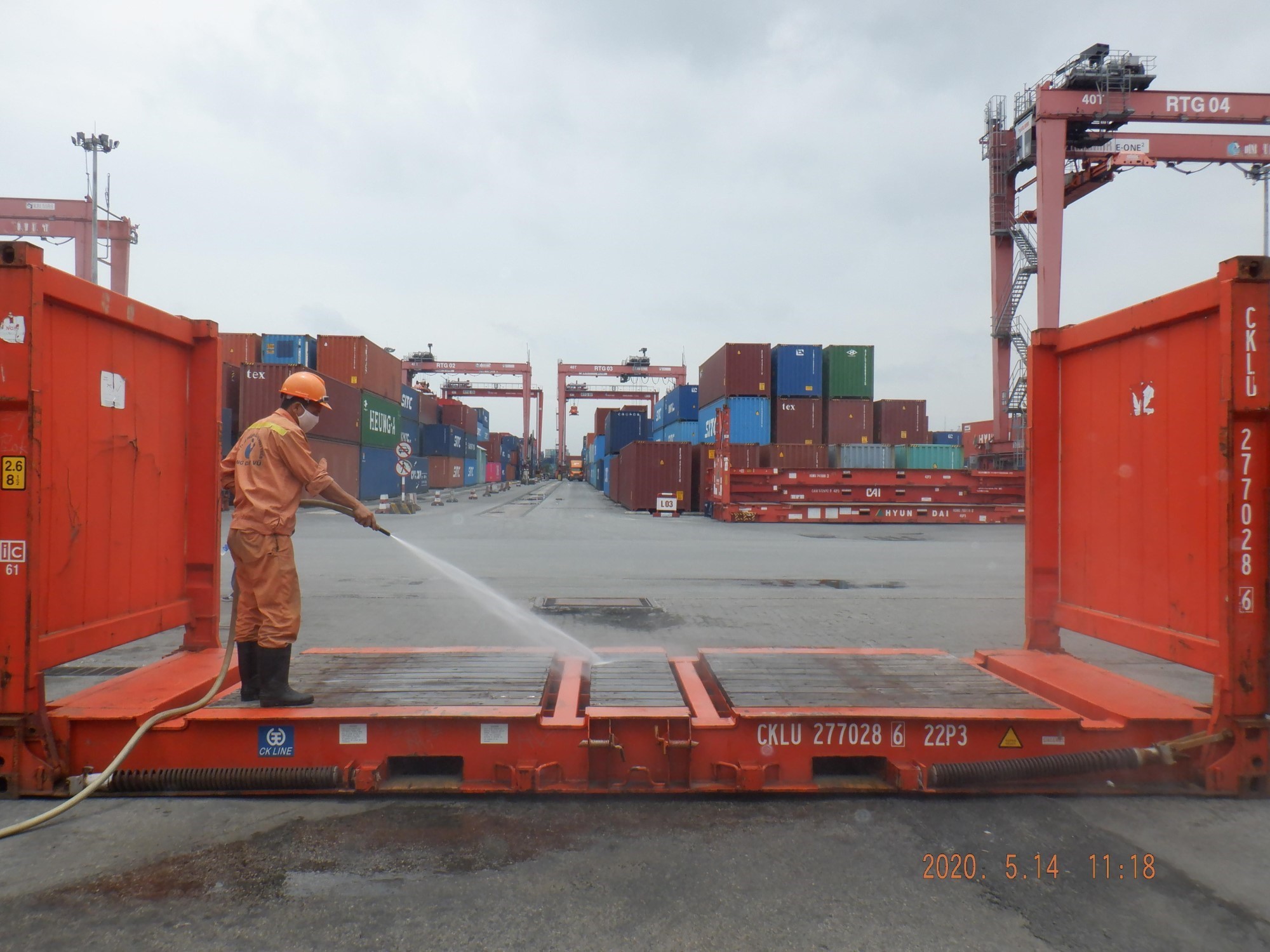 Khu dịch vụ vệ sinh container rộng 300 m² xe ra vào thuận tiện, khu vực sửa chữa container được quy hoạch riêng rộng hơn 1.000 m², có thể linh hoạt mở rộng trong trường hợp số lượng container sửa chữa tăng nhiều. Với công suất bình quân có tuần vượt hơn 2.000 vỏ container được giám định và vệ sinh - sửa chữa, Cảng Đình Vũ cam kết đảm bảo chất lượng dịch vụ để đem lại sự hài lòng cho khách hàng và các hãng tàu.