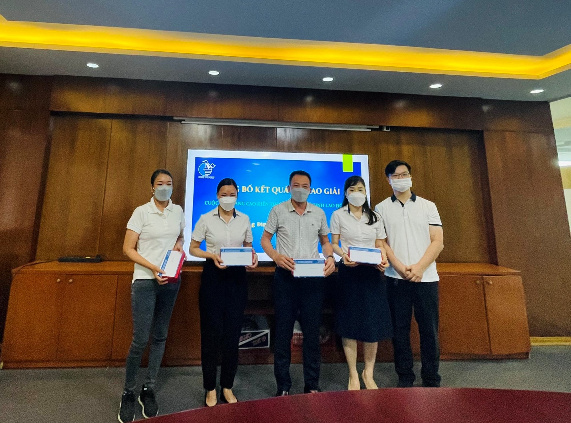 Giải Ba: Đào Văn Tuy & Ngô Thị Ngọc Duyên – Đội GNKH, Dương Thảo Nguyên – Phòng Kỹ thuật, Nguyễn Văn Cường – Đội Bốc xếp