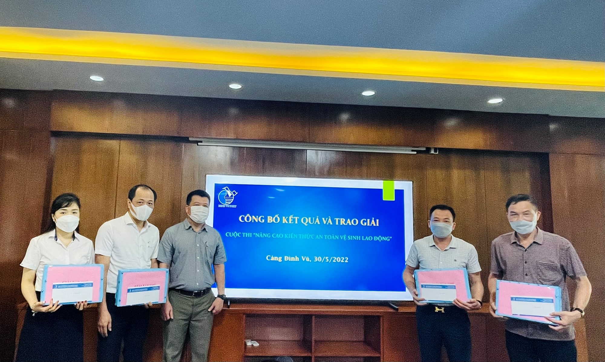 Hưởng ứng kế hoạch số 89/KH-UBND ngày 07/4/2022 của UBND Thành phố Hải Phòng về triển khai Tháng hành động về an toàn, vệ sinh lao động trên địa bàn thành phố năm 2022; ngày 11/5/2022 Cảng Đình Vũ phát động CBCNV toàn Công ty tham gia Cuộc thi Nâng cao kiến thức An toàn Vệ sinh lao động do BCH Công đoàn và BCH Đoàn Thanh niên phối hợp tổ chức. Sáng ngày 30 tháng 5, Ban Tổ chức công bố kết quả và tiến hành trao giải cho các tập thể và cá nhân có thành tích cao trong cuộc thi.