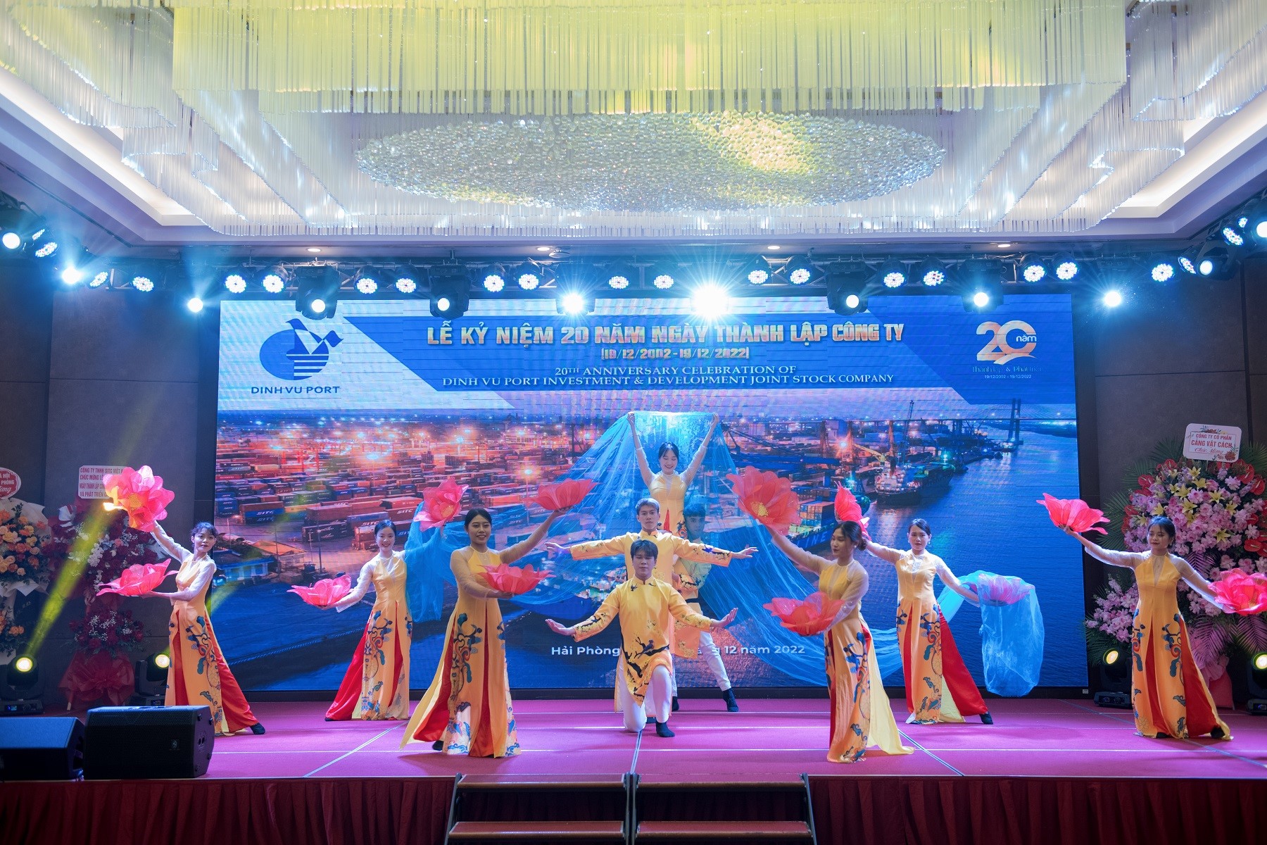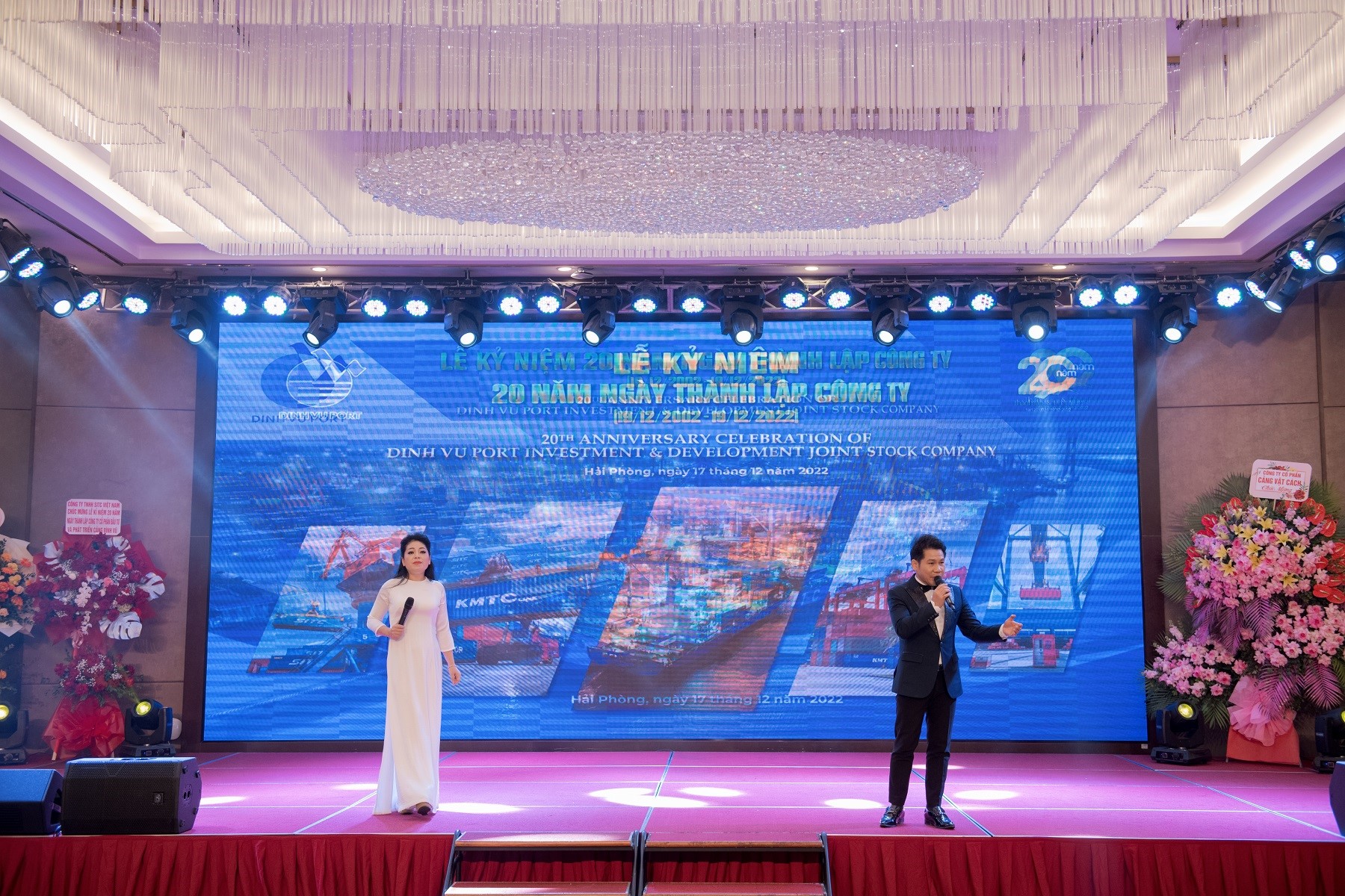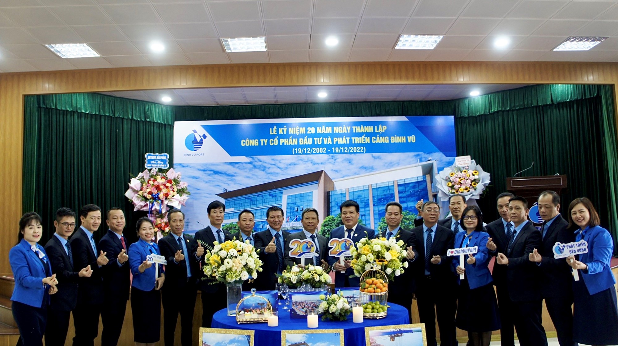 Tối ngày 17/12/2022, Cảng Đình Vũ long trọng tổ chức Lễ kỷ niệm 20 năm thành lập Công ty tại Hội trường khách sạn Sheraton Hải Phòng. Cảng Đình Vũ vinh dự được đón tiếp lãnh đạo, đại diện lãnh đạo các cơ quan quản lý Nhà nước, các doanh nghiệp là đối tác – khách hàng của Cảng Đình Vũ, các thế hệ nguyên lãnh đạo và nguyên cán bộ chủ chốt Công ty đến tham dự và chúc mừng kỷ niệm 20 năm thành lập. Chương trình được dẫn dắt bởi các MC chuyên nghiệp từ thủ đô Hà Nội cùng sự tham gia biểu diễn của 2 ca sĩ nổi tiếng Anh Thơ và Trọng Tấn. Xuyên suốt chương trình là không khí trang trọng, vui tươi, các đại biểu cùng giao lưu và ôn lại những kỷ niệm từ những ngày đầu thành lập Cảng Đình Vũ qua bài phát biểu của Chủ tịch HĐQT Vũ Tuấn Dương, Tổng Giám đốc Cao Văn Tĩnh và qua thước phim kỷ niệm 20 năm thành lập Công ty. Ngoài ra, trong khuôn khổ chương trình Ban Tổ chức cũng đã công bố kết quả giải golf giao hữu và trao giải cho các golfer tham gia thi đấu cùng ngày. Đặc biệt, Cảng Đình Vũ còn dành tặng 03 phần quà cho 03 vị khách may mắn nhất trong buổi tiệc chiêu đãi qua hình thức bốc thăm ngẫu nhiên.