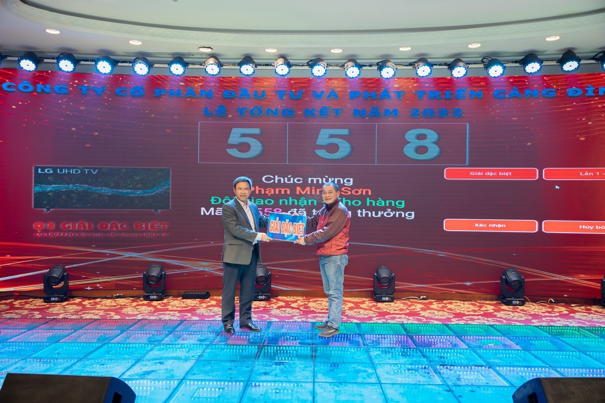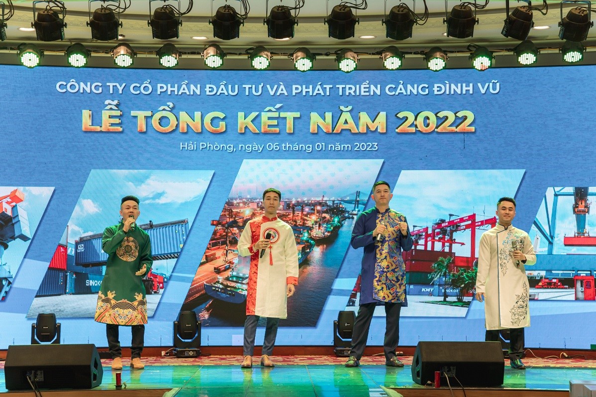Tối ngày 06/01/2023, Công ty Cổ phần Đầu tư và Phát triển Cảng Đình Vũ đã tổ chức Lễ tổng kết và liên hoan tất niên năm 2022 tại Diamond Palace - Trung tâm tổ chức sự kiện Hải Đăng Plaza. Tham dự chương trình có sự hiện diện của các thành viên Hội đồng quản trị, Ban kiểm soát, Ban điều hành Công ty, lãnh đạo các phòng ban đơn vị cùng hơn 200 cán bộ nhân viên tiêu biểu.