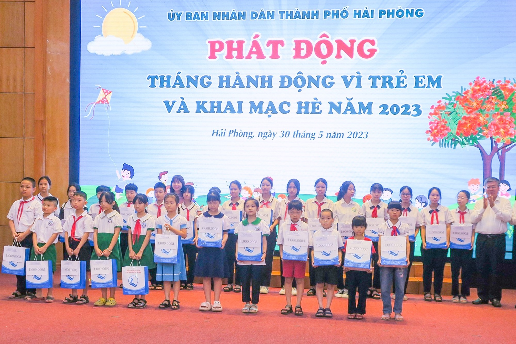 Cũng tại chương trình, Trung tâm CTXH và Quỹ Bảo trợ trẻ em Hải Phòng đã tiếp nhận ủng hộ Quỹ năm 2023; trong đó Cảng Đình Vũ tiếp tục đồng hành tài trợ cho quỹ 10 triệu đồng. Thông qua chương trình, các sở ban ngành cùng Quỹ Bảo trợ trẻ em Hải Phòng đã trao tặng 56 suất học bổng và 32 suất quà cho các em học sinh vượt khó vươn lên của quận Kiến An, trị giá hơn 80 triệu đồng. Thành đoàn và Sở Giáo dục - Đào tạo trao tặng 20 suất học bổng cho các em thiếu nhi tiêu biểu của quận Ngô Quyền và Kiến An; Quận Kiến An trao tặng 30 suất học bổng cho trẻ em có hoàn cảnh khó khăn của quận, mỗi suất gồm 1.000.000 đồng tiền mặt và 1 phần quà; Công ty TNHH Bảo hiểm Nhân thọ AIA tra 40 xe đạp cho các trẻ em có hoàn cảnh đặc biệt vươn lên cuộc sống.