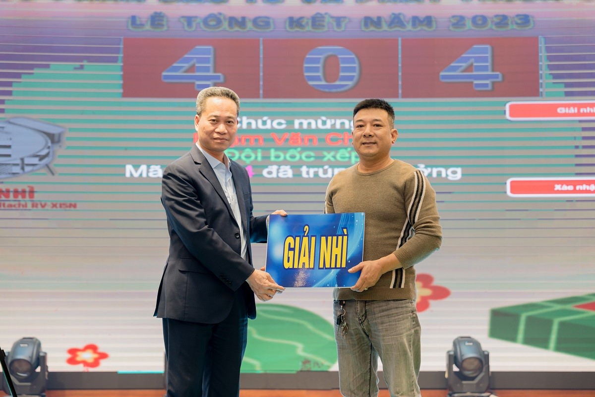 Các giải thưởng trong chương trình quay số may mắn hàng năm đều mang tính sử dụng cao và thiết thực trong đời sống hàng ngày trong đó 2 giải Nhất năm nay là máy giặt LG tích hợp tính năng sấy vô cùng tiện lợi trong mùa đông thuộc về anh Nguyễn Văn Cường – Đội Bốc xếp và anh Phùng Thế Cường – Đội Cơ giới; 01 giải Đặc biệt là máy tính bảng Ipad mini thuộc về anh Phan Văn Toán mã số 277 đến từ Đội Giao nhận kho hàng. Nụ cười và niềm vui của những cá nhân lên sân khấu nhận giải ngoài việc thể hiện may mắn của mỗi người còn minh chứng cho sự khích lệ lớn lao của ban lãnh đạo dành cho những nỗ lực và cống hiến của tập thể người lao động xuyên suốt một năm qua.