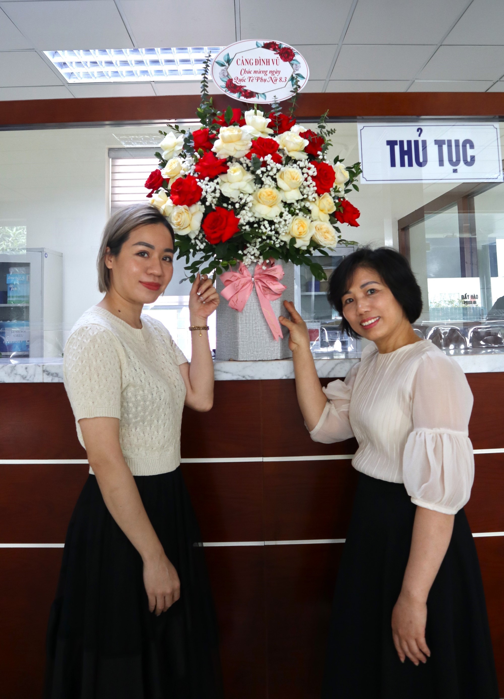 Trước đó vào ngày 07/3/2024, đại diện Ban lãnh đạo Công ty cùng các tổ chức đoàn thể Cảng Đình Vũ đã trao tặng những lẵng hoa tươi thắm, rực rỡ nhất cùng tình cảm và những lời chúc mừng tốt đẹp tới tập thể nữ nhân viên trong toàn Công ty.