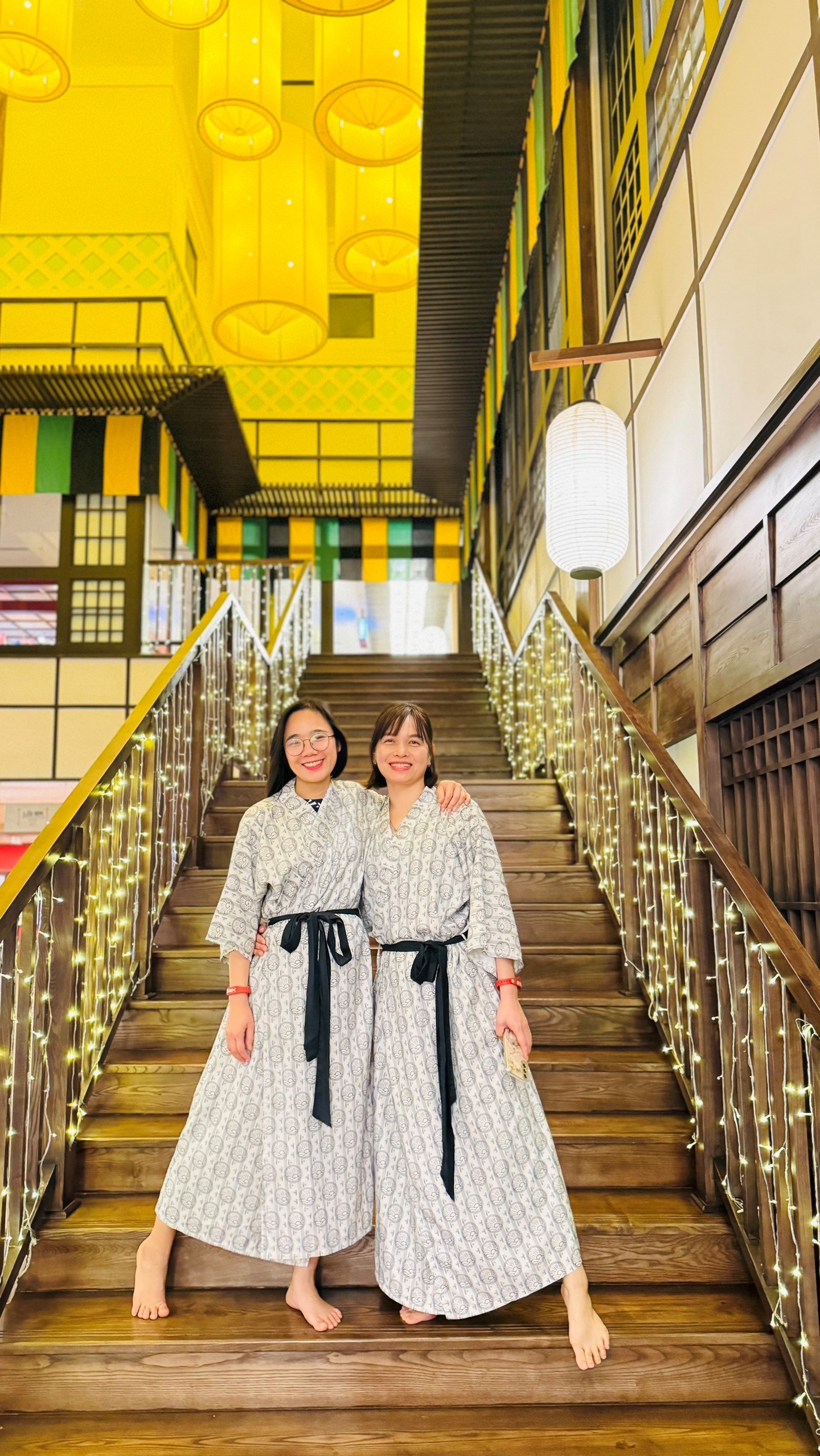 Tại Khu nghỉ dưỡng Yoko Onsen Quang Hanh, các chị em tận hưởng các trải nghiệm bồn tắm nóng, bồn tắm lạnh, xông hơi khô, xông hơi ướt và thưởng thức ẩm thực phong cách Nhật Bản. Trong không gian được thiết kế và bài trí chuẩn Nhật, nữ CBCNV Cảng Đình Vũ đã có những phút giây vô cùng thư giãn, vui vẻ, tăng cường giao lưu giữa các đơn vị sau khoảng thời gian tập trung, cống hiến cho công việc.