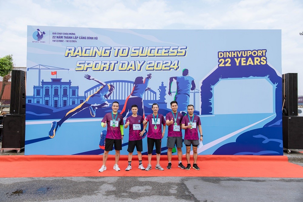 Sáng ngày 11/12/2024, Cảng Đình Vũ tổ chức thành công Giải chạy phong trào chào mừng kỷ niệm 22 năm ngày thành lập (19/12/2002 - 19/12/2024) với sự đồng hành của SunGo Media. Chương trình có sự tham dự của Chủ tịch HĐQT, Ban Tổng Giám đốc, lãnh đạo các đơn vị phòng ban cùng hơn 80 vận động viên và đông đảo CBCNV toàn Công ty đến cổ vũ.