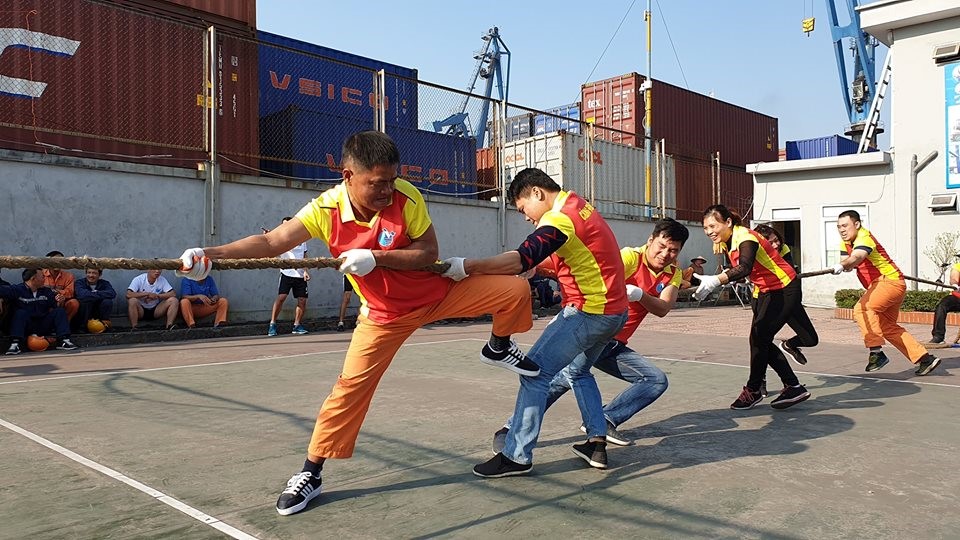 Trong khuôn khổ hoạt động, có 2 môn thể thao được tổ chức là Kéo co và Bóng chuyền. Với môn Kéo co, có 4 đội thi đăng ký tham gia: 2 đội liên quân Bốc xếp-Giao nhận kho hàng; 1 đội liên quân Cơ giới-Tổ chức Tiền lương và 1 đội liên quân Văn phòng. Môn Bóng chuyền là màn thi đấu giao hữu 5 hiệp giữa 2 đội Bốc xếp và Cơ giới. Ban tổ chức đã trang bị cho các đội thi những bộ quần áo đồng phục thi đấu với màu sắc riêng biệt có in logo của Cảng Đình Vũ tạo nên hình ảnh của một giải đấu vô cùng chuyên nghiệp và ấn tượng.