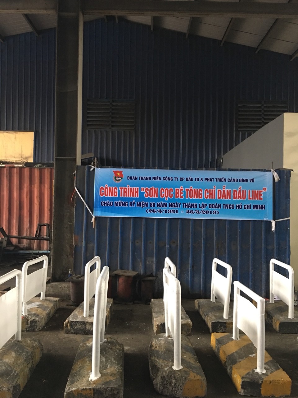 Công trình “Sơn cọc chỉ dẫn line container toàn bãi” do yêu cầu kỹ thuật và độ khó cao, số lượng nhiều (trên 80 cọc) nên BCH Đoàn thanh niên đã kết hợp với số cán bộ nhân viên có kinh nghiệm trong việc sơn sửa trang thiết bị của công ty thực hiện từ ngày 18/3. Đến ngày 26/3 đã thực hiện sơn sửa được hơn 30 cọc và vẫn đang tiếp tục hoàn thiện.