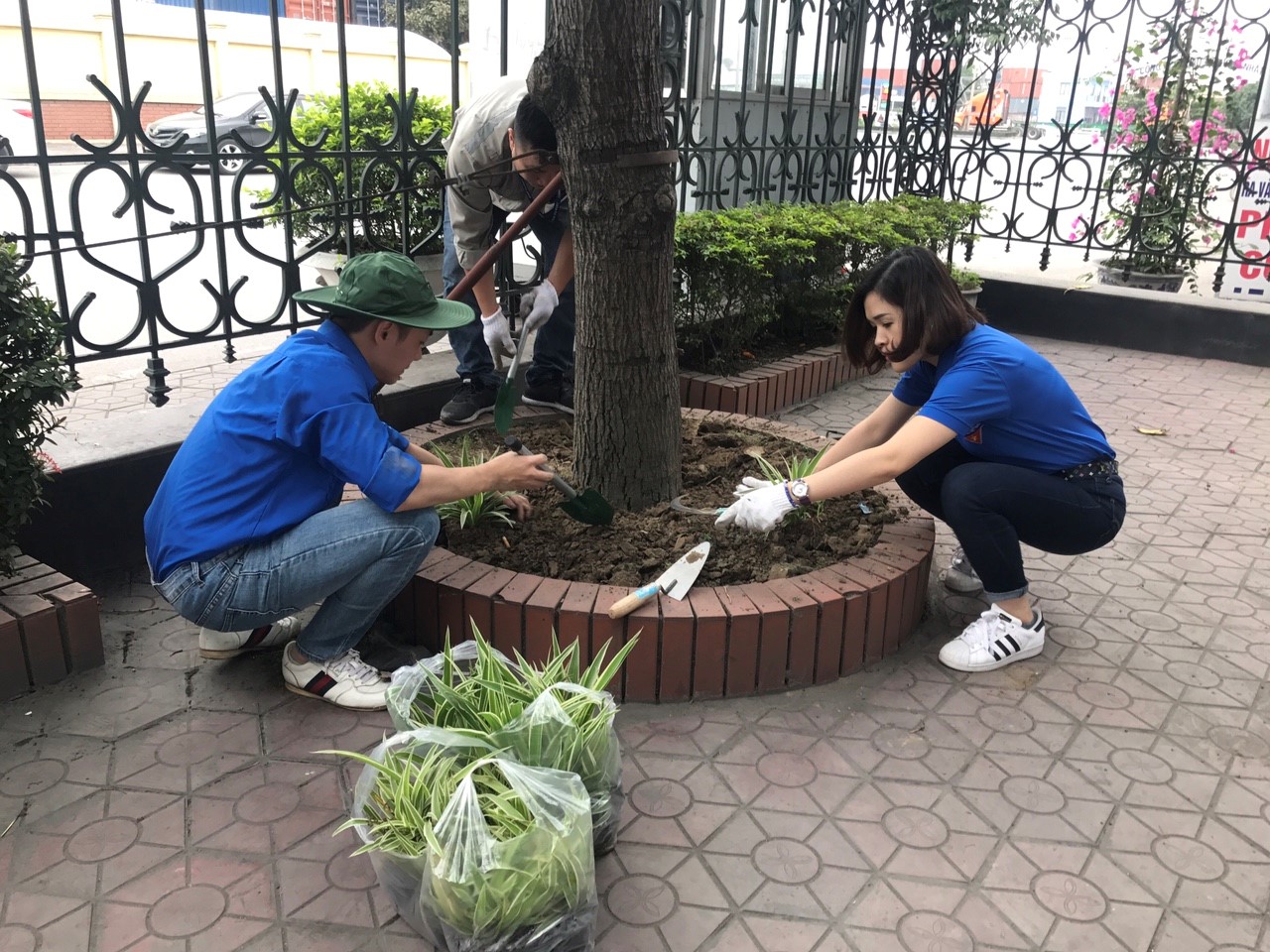 Với công trình “Cắt tỉa cây xanh Nhà cân số 1 – Trồng cây trang trí các bồn hoa” lực lượng tham gia chính là đoàn viên thanh niên Chi đoàn Văn phòng và Chi đoàn Giao nhận kho hàng. Trong sáng ngày 15/3 đã thực hiện cắt tỉa gọn gàng các cây xanh, nhổ cỏ quanh khu vực Nhà cân số 1; đồng thời thực hiện trồng cây trang trí các bồn hoa trong khuôn viên Công ty với tổng số hơn 300 cây dây nhện có tác dụng hút bụi và thanh lọc không khí.