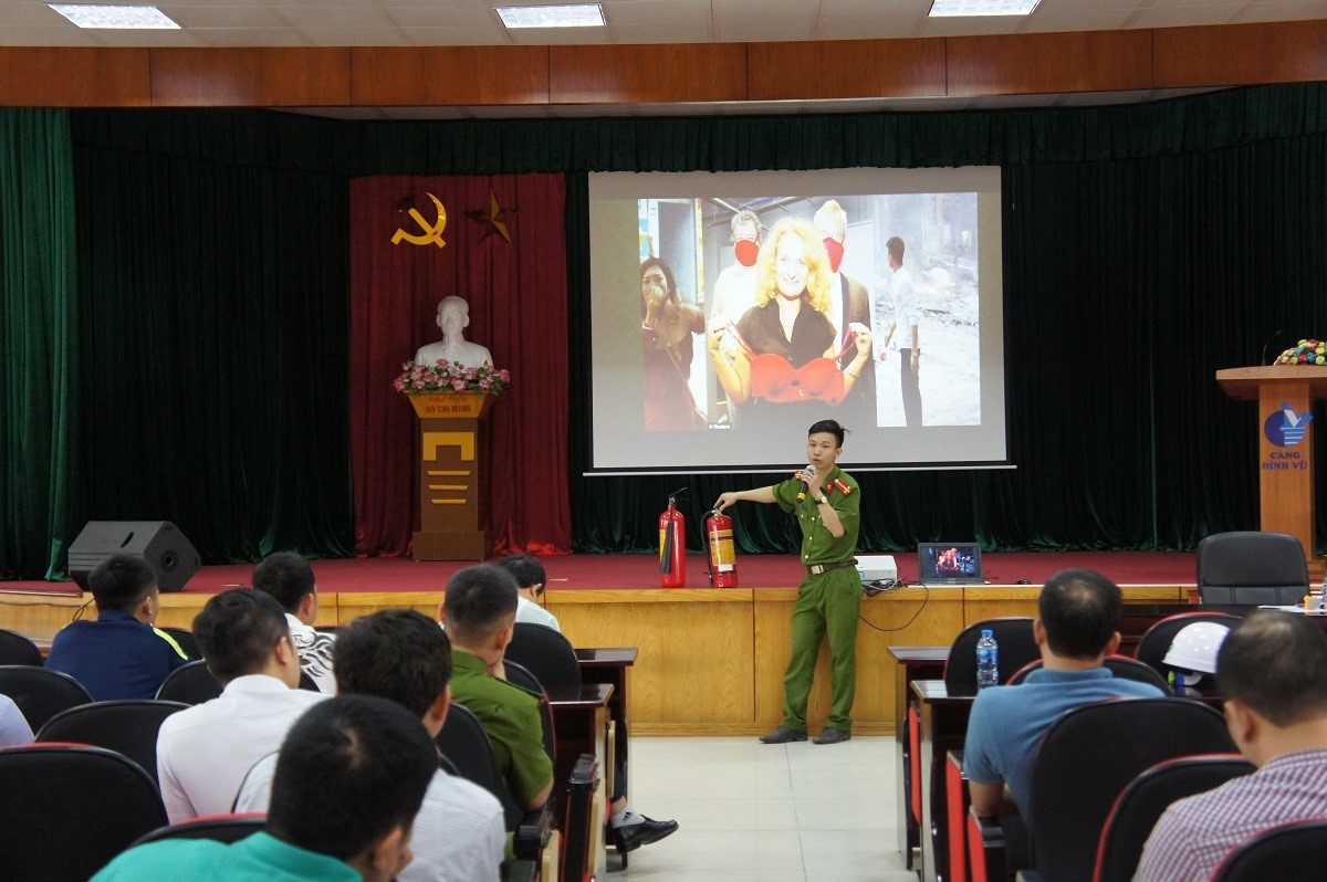 Trong chương trình buổi sáng, các chiến sĩ công an đã phổ biến lý thuyết các phương án phòng cháy chữa cháy và cứu nạn, cứu hộ tại Hội trường Cảng Đình Vũ. Và ngay trong buổi chiều cùng ngày, các cán bộ chiến sĩ công an cùng Ban điều hành Công ty và đông đảo cán bộ nhân viên Cảng Đình Vũ đã triển khai thực hành các phương án đã được tuyên truyền và phổ biến lý thuyết.