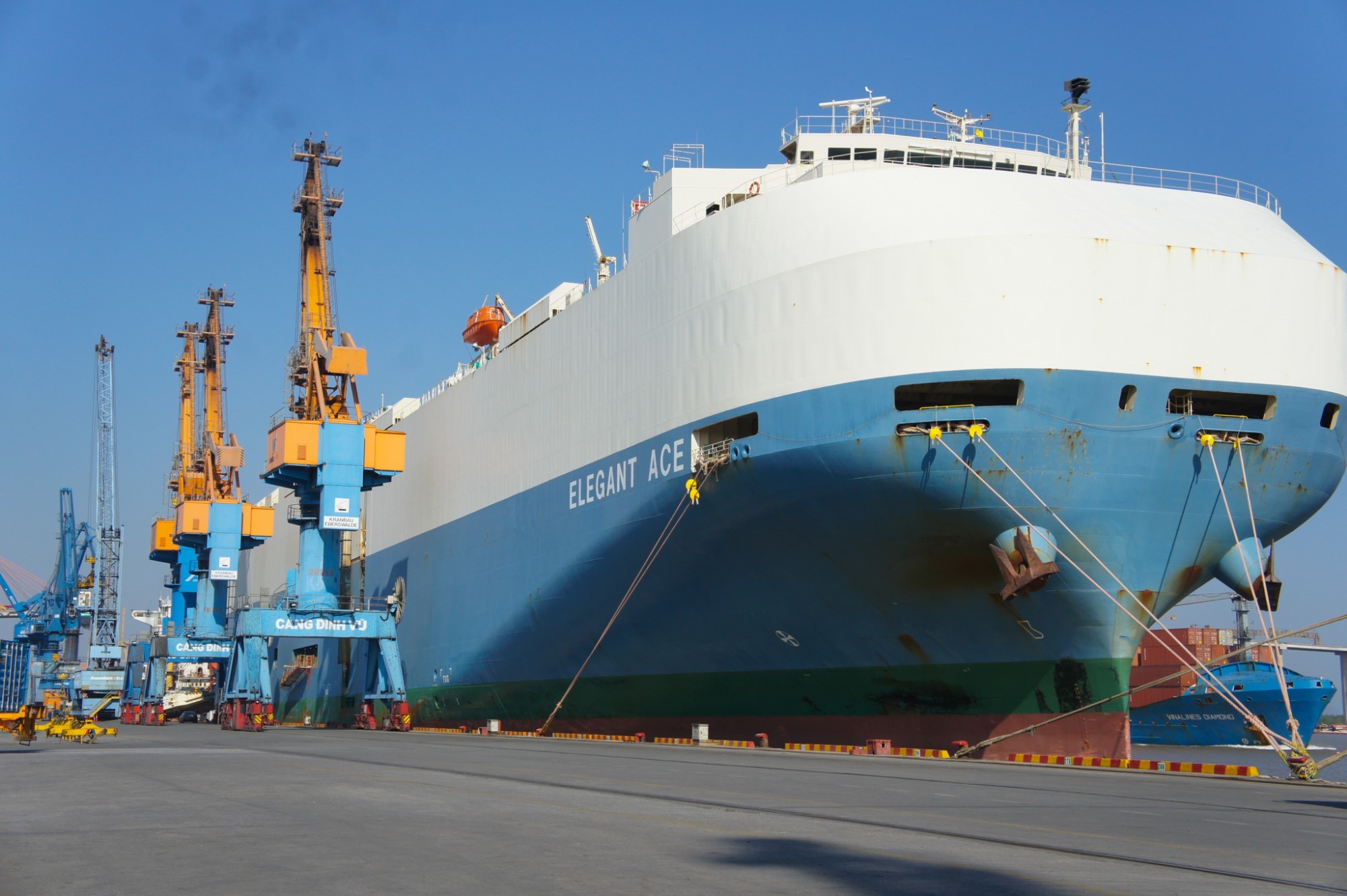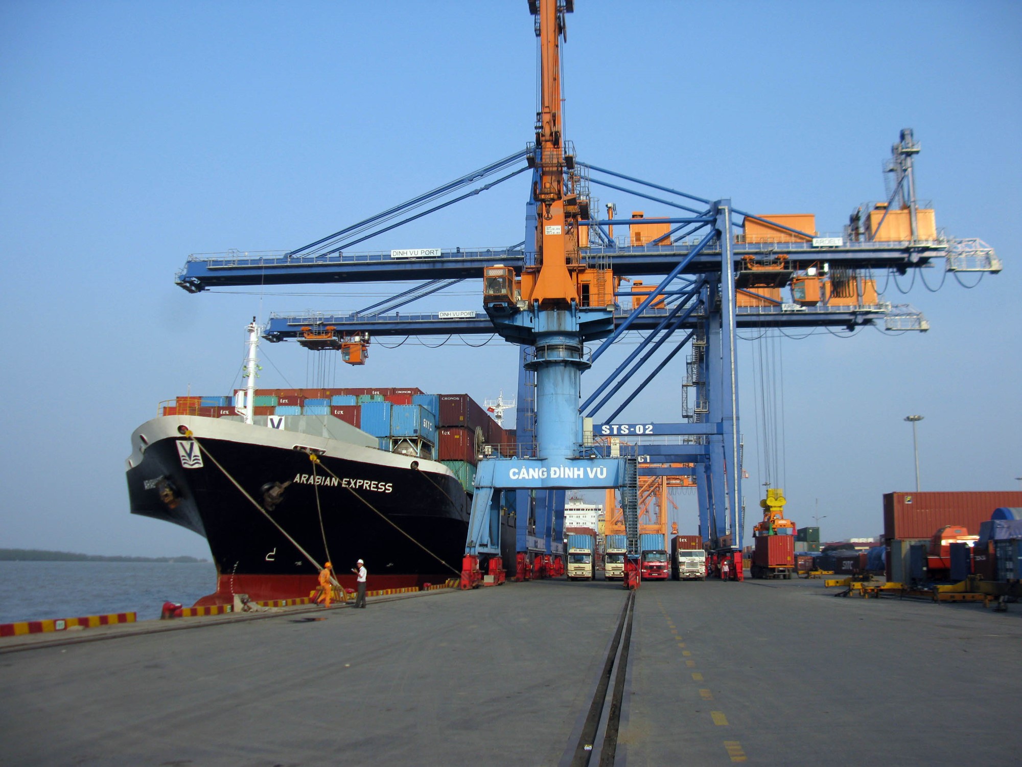 - 02 Cần trục giàn STS (Ship-to-shore): sức nâng 50 tấn, tầm với phía sông: 35m.